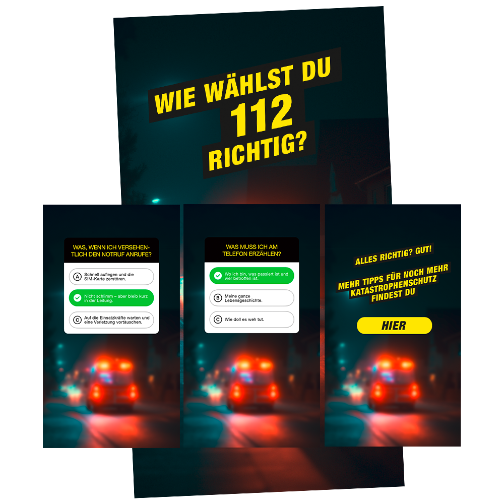 Am 11.02. findet – passend zur Nummer – der Europäische Tag des Notrufs statt. Der Aktionstag soll über die europaweite Notrufnummer aufklären und ihre allgemeine Bekanntheit steigern. Da machen wir gerne mit. Denn es gibt immer noch viele Unsicherheiten und Unklarheiten bei der Nutzung des Notrufs. Genau hierfür haben wir ein Story-Quiz vorbereitet: